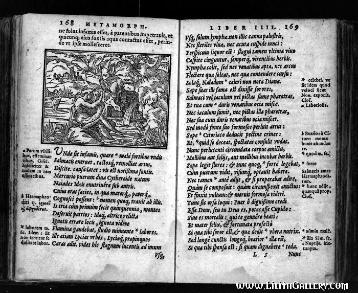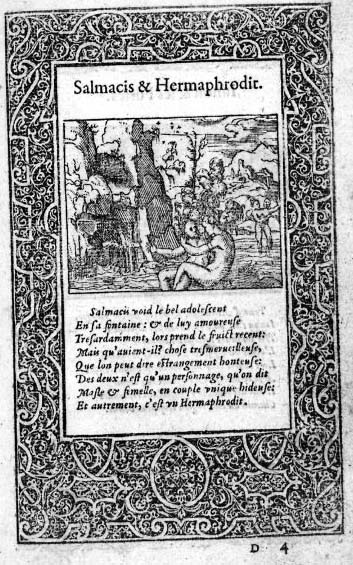 On this website you will find a copy of Ovid's story of Salmacis and Hermaphroditus, along with a collection of artworks concerning Hermaphroditus and the modern conception of hermaphrodites. One out of every 50 people born in our modern society is born a hermaphrodite. Sometimes the doctors notice them at birth and perform surgery to make them one specific sex, or sometimes the "boy" doesn't find out until he starts growing breasts during puberty. Some societies kill them when they are discovered to be hermaphrodites. Rare societies, like an island in the South Pacific where hermaphrodites are common actually welcome them as a third official sex.